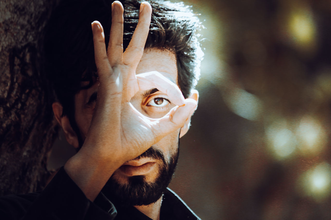 25-29 Years Bed - Furniture Circle Close-Up Focus On Foreground Geometric Shape Glass - Material Hand Sign High Angle View Human Body Part Human Hand Human Limb Lifestyles Mirror - Object One Person Palm Of Hand Part Of Reflection Showing Stop Gesture Vanity Mirror Young Adult Young Men