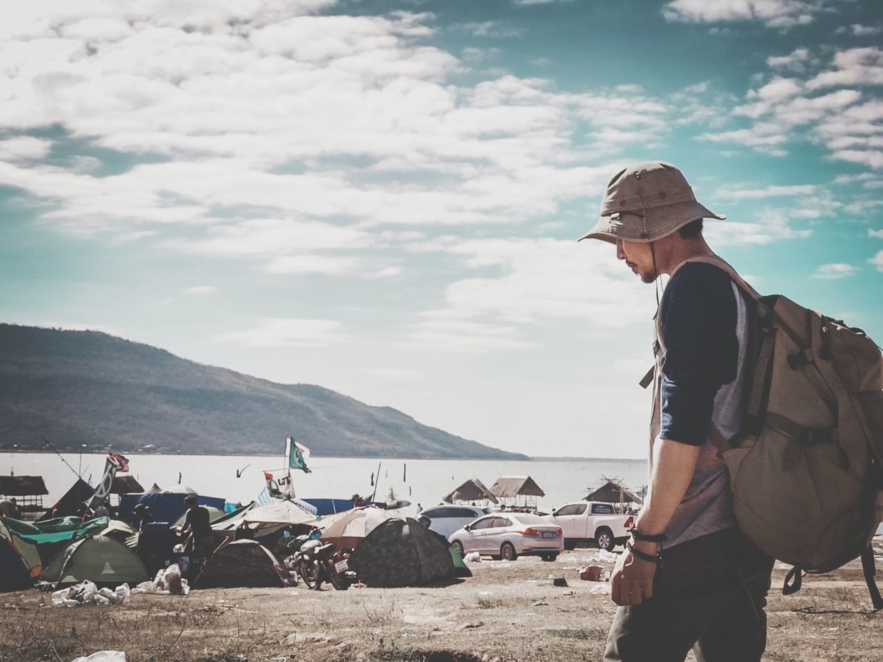 sky nature adult cloud men one person water sea beach land standing mountain leisure activity day travel vacation lifestyles holiday trip hat clothing backpack environment side view outdoors scenics - nature occupation casual clothing beauty in nature adventure travel destinations activity person coast sunlight copy space luggage and bags