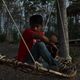 20-24 Years Young Adult Young Women animals in the wild dark day forest headshot land leisure activity lifestyles nature one person outdoors plant rear view standing sunlight tranquility tree tree trunk waist up woodland — in Satun, Thailand