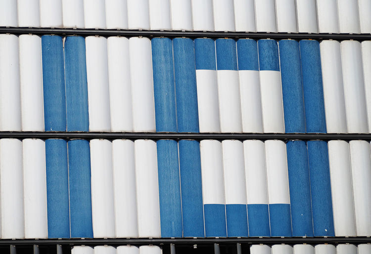 Fashionable brunette woman in a blue warm hat and sweater and sunglasses stands against background